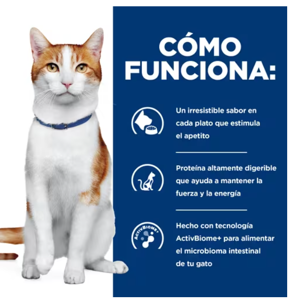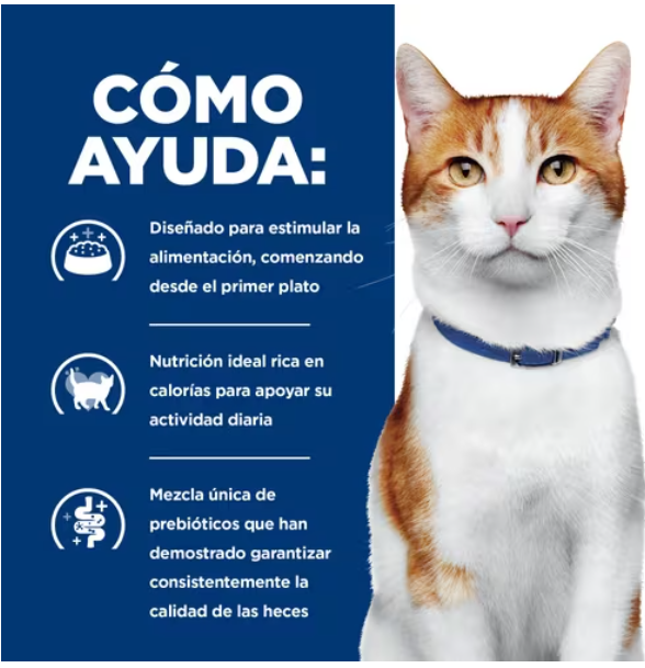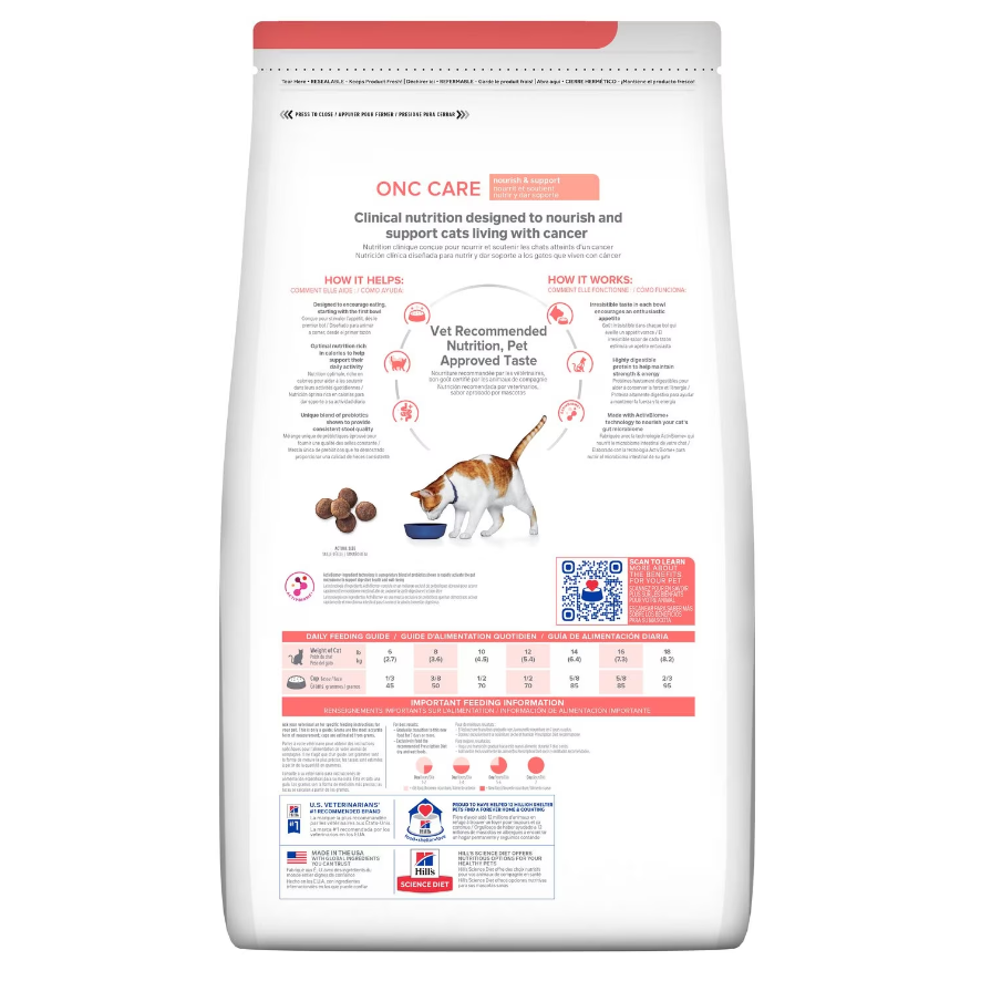 Cuando los gatos tienen cáncer, es fundamental asegurarse de que se satisfagan sus necesidades nutricionales. Los alimentos terapéuticos para gatos diagnosticados con cáncer están diseñados para ayudar a mantener la fuerza y la energía, así como para alentarlos a comer desde el primer plato. Los nutricionistas y veterinarios de Hill's desarrollaron la nutrición clínica de Hill's Prescription Diet ONC Care para ayudar específicamente a nutrir y apoyar a los gatos que luchan contra el cáncer. Esta comida seca está hecha con pollo y está diseñada para ser nuestra mejor nutrición hasta el momento, con grasas sabrosas y proteína altamente digerible. Los nutrientes altamente digeribles en Prescription Diet ONC Care son fáciles de absorber para las mascotas y la fórmula también contiene ActivBiome+, una mezcla patentada de fibras prebióticas para respaldar un microbioma gastrointestinal saludable y que ha demostrado proporcionar una calidad de heces constante.
