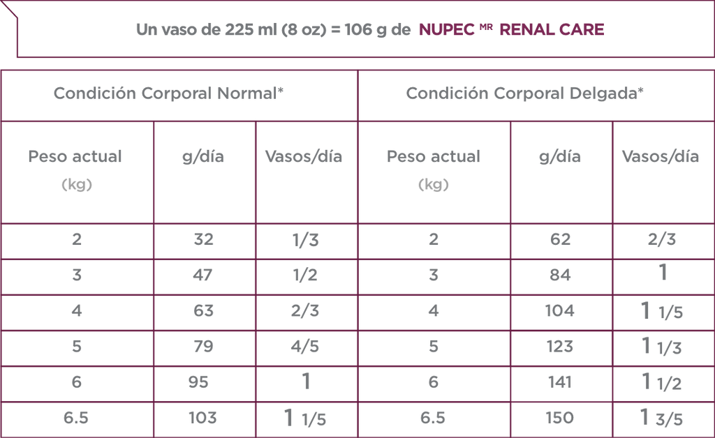 NUPEC FELINO RENAL CARE es un alimento especializado auxiliar en el manejo integral del cuidado renal de los felinos. Desarrollado con niveles controlados de proteínas altamente digestibles que ayudan a reducir la sobrecarga de trabajo renal por filtración de nitrógeno. Los niveles limitados de minerales aportados en la dieta ayudan a retrasar la progresión de la enfermedad renal. Su formulación con alta densidad calórica* aporta la energía y nutrientes necesarios en una pequeña porción de alimento, lo que ayuda a compensar la disminución en el apetito de los felinos afectados por una enfermedad renal.