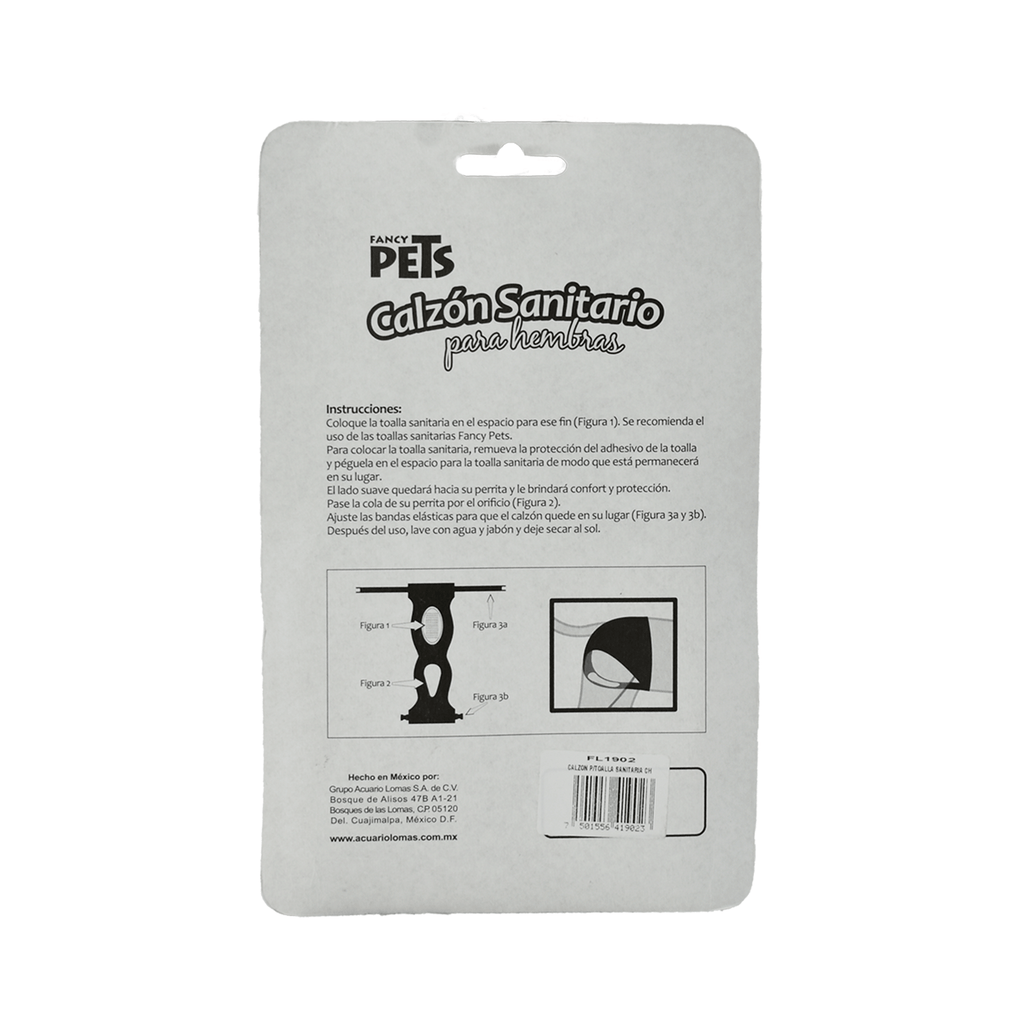 Apto para toallas sanitarias Fancy Pets. Beneficios: Accesorio necesario para la higiene de las perritas. Su uso evita goteos por toda la casa y protege los muebles y alfombras de manchas de sangre, cuenta con un snap ajustable para mantener la prenda en su lugar.