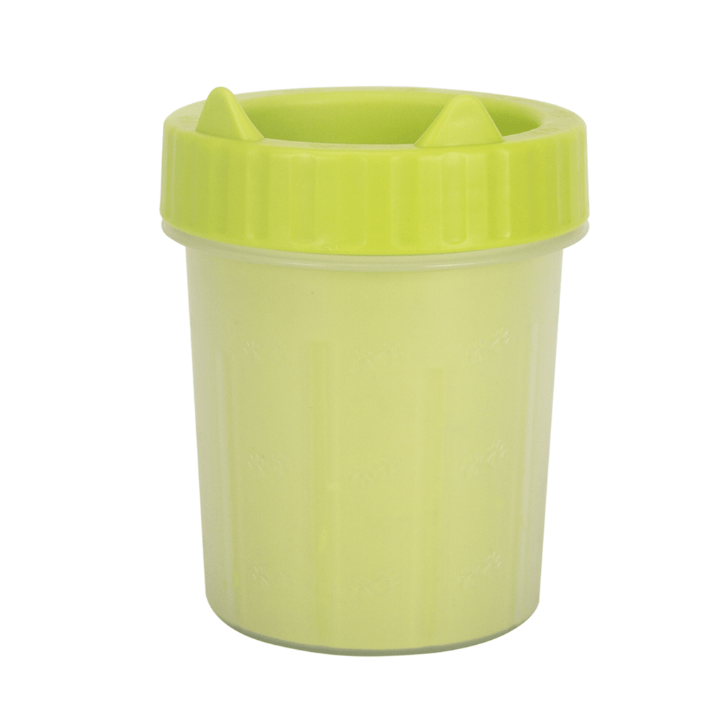 Llena el limpiador con agua y un poco de jabón a consideración. Mete la pata de tu mascota y gira 360° para asearla. Después del lavado, saca su pata, sécala con un paño limpio y tira el agua sucia.