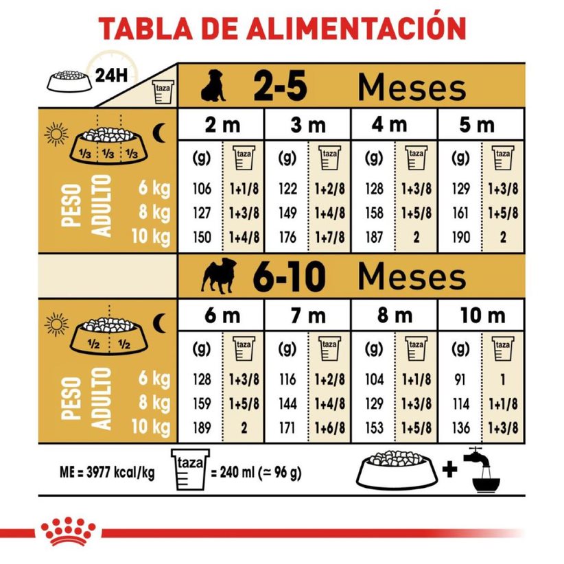 Alimento específico para cachorros Pug de 2 meses a 10 meses de edad.